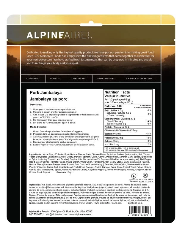 - Ingredients: white rice, fd pulled pork (natural flavors, salt), chicken flavor broth low sodium [maltodextrin, salt, torula yeast, dehydrated vegetables (onion, celery, parsley, spinach, garlic, carrot), potato flour, xanthan gum, spices, extractives of spice (including turmeric and paprika), soy lecithin. not more than 2% soybean oil added as a processing aid], bell pepper red & green combo, tomato flakes, potato starch, white onion, tomato powder, celery stalks, garlic granulated, paprika, natural flavor [contains baker’s yeast extract, salt, canola oil (anti-dusting)], sea salt, white onion, worcestershire sauce powder {[vinegar, sugar, salt, vegetable and fruit (onion, tomato, apple), caramel color, spice extract yeast extract, spices, garlic], salt, maltodextrin, spices, garlic powder and onion}, cayenne pepper (ground red pepper), parsley, oregano, thyme, chives, black pepper