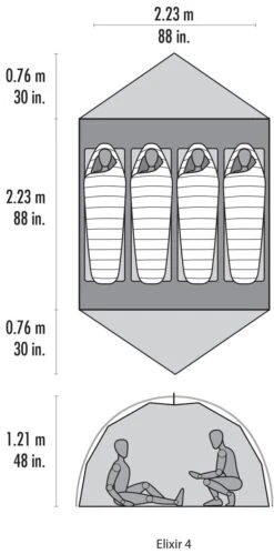 - Taped seams and a storm flap on the vestibule zipper keep rain out