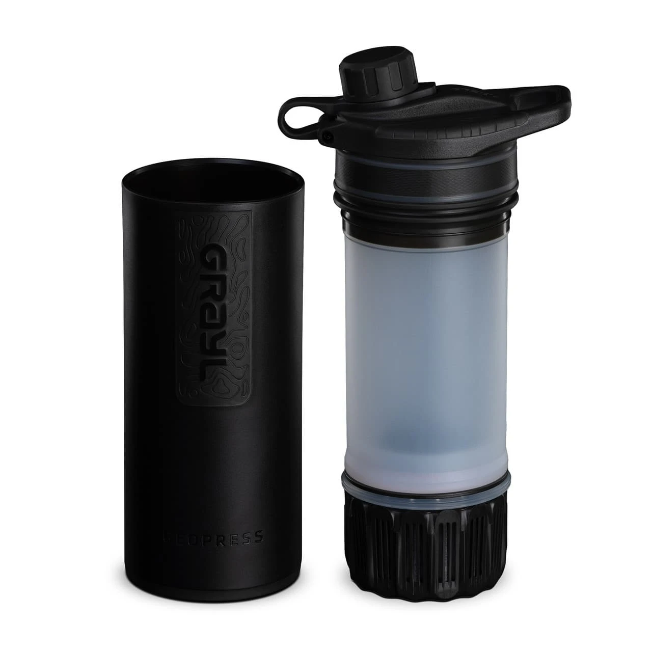 Just like making French Press coffee. Fill the outer cup with unfiltered water, plunge the press down, and drink. You can quench your thirst in seconds as you hike, camp or paddle. Grayl’s patented electroadsorpative media creates a sub-micron trap to remove pathogens and inorganic compounds.