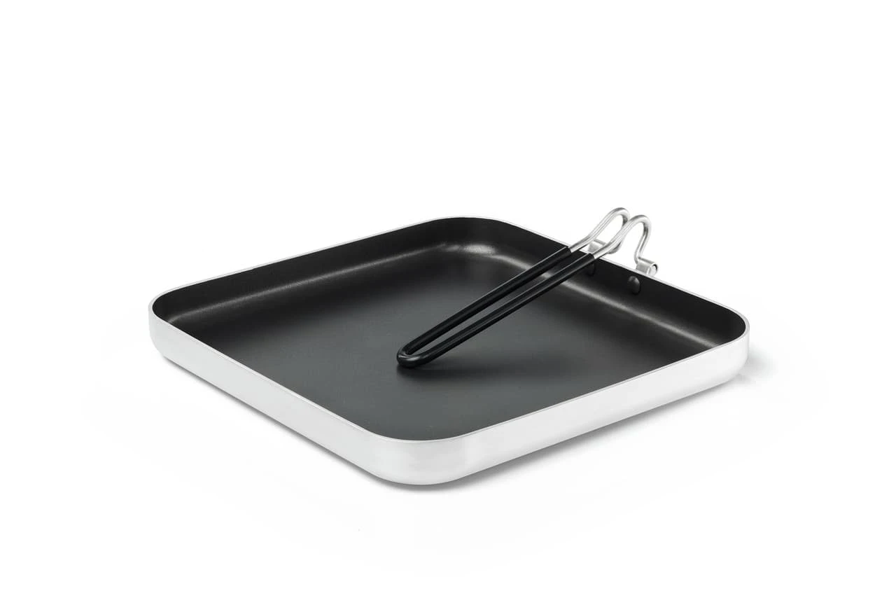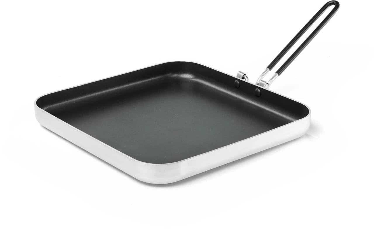 Light enough for backpacking, large enough for a basecamp stove, and Teflon coated for easy clean-up. The square shape maximizes the space used on propane camp stoves, and is ideal for making the perfect pancake sandwich.
