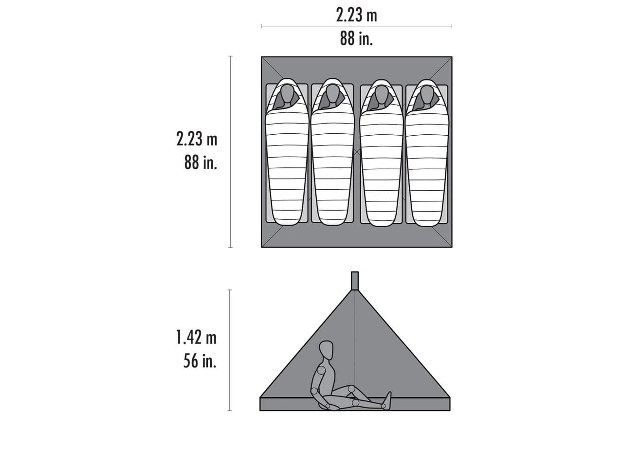 Add a floor and bug protection to your Front Range tarp. The bathtub floor provides a dry place to sleep when the ground is wet or snowy, and is roomy to comfortably sleep 4 people. Use it by itself on dry, warmer weather adventures.