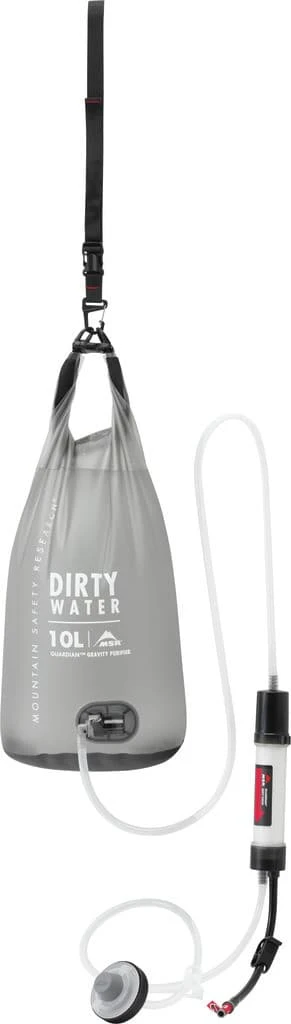 A true game changer that makes almost any questionable water source safe to drink. The Guardian purifies and filters water, so you don’t need to carry chemical water treatment or a UV purifier when you’re in virus territory. The gravity system is a low-effort option that needs no pumping – simply fill and raise the reservoir and let gravity filter and purify your water while you set up camp, prep dinner, or just relax.