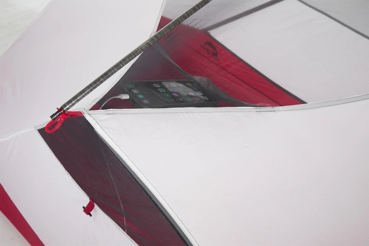 - Silver-grey fly creates neutral interior lighting. Red floor reflects headlamps and makes gear easy to spot