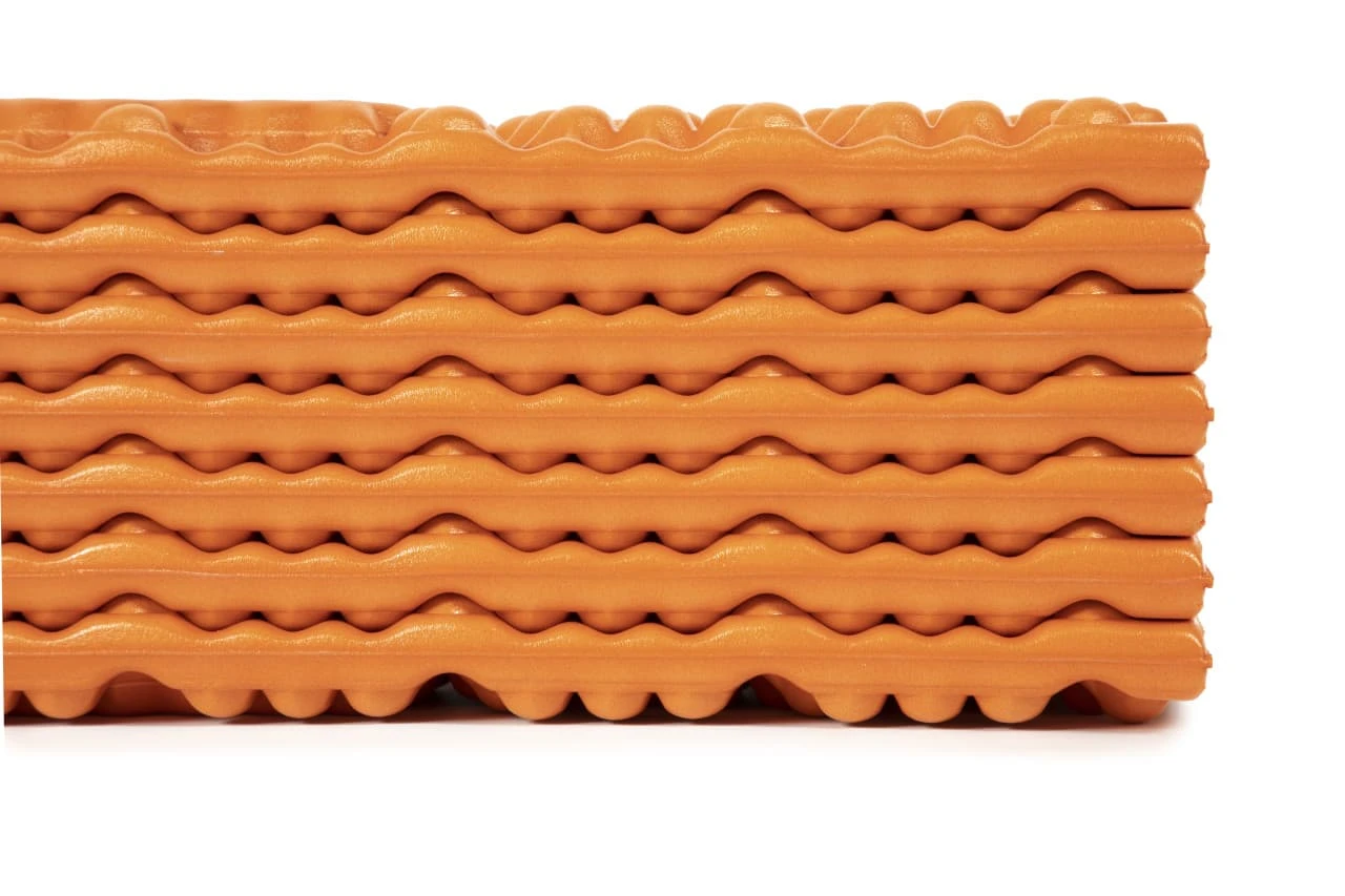 - Foam nodes nest into the opposite panel’s divots, which helps it pack down smaller and be 1.5x thicker than pads of similar weight