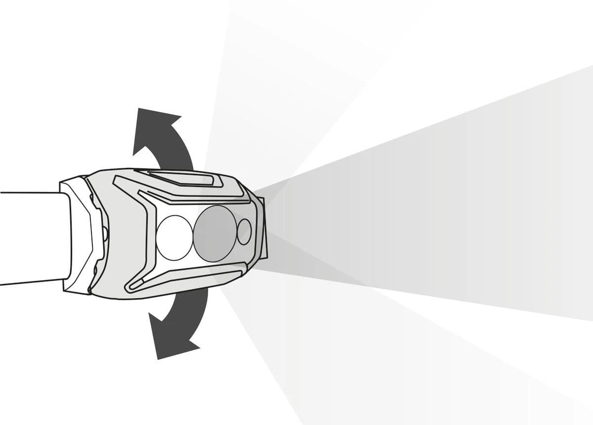 - 5 modes, 3 in white light: high (2h at 450 lumens), medium (10h at 100 lumens), low (100h at 7 lumens), 2 in red: continuous (60h at 2 lumens) and strobe (400h at 2 lumens). Runtimes from use with 3 AAA batteries, CORE battery runtimes will differ